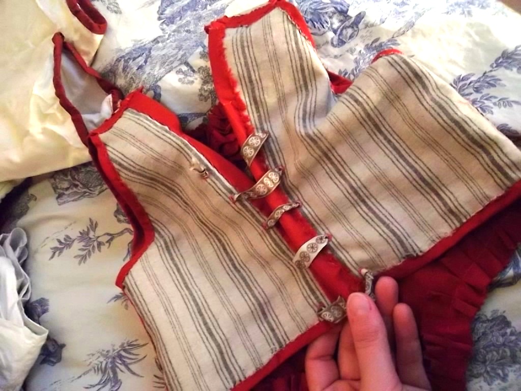 Comme je jugeais Sonia encore un peu petite pour porter un corset j'ai baleiné légèrement le veston en question: